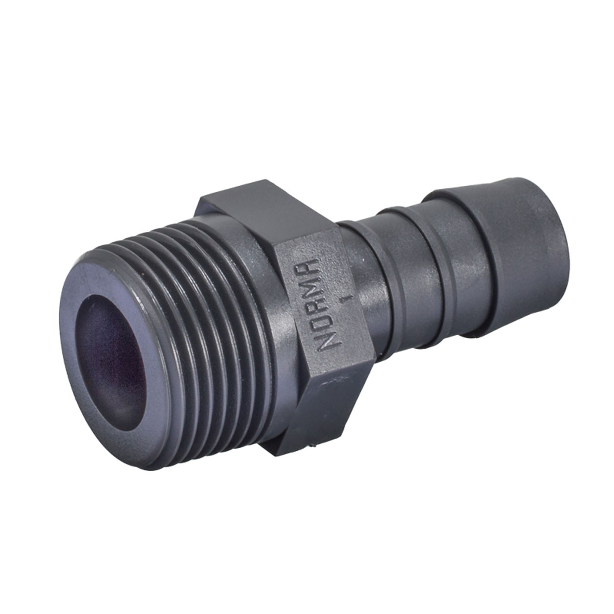 NORMAPLAST® gerader Einschraubstutzen | Gewindetülle aus Kunststoff Der gerade Einschraubstutzen von NORMAPLAST® ist eine Schlauch- und Rohrverbindung aus Kunststoff, die medienführende Leitungen sicher, zuverlässig und kostengünstig miteinander verbindet. Der gerade Einschraubstutzen von NORMAPLAST® findet Anwendung im Automobilbau sowie in fast allen Industriebereichen. Diese Verbindungsteile sind gekennzeichnet durch ein Gewinde auf der einen Seite, sowie einen Schlauch-Anschlussstutzen auf der anderen Seite. Der Tannenbaum des Einschraubstutzens gewährleistet einen sicheren Sitz des Schlauches. Gegebenenfalls kann eine zusätzliche Sicherung der Verbindungsstelle durch eine Schlauchschelle erforderlich sein.